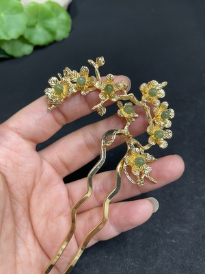 H34037226 Hetian Jade Hairpin Non-Gold-Inlaid Total Weight Approx. 14.8g