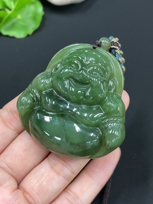 H27073582 Hetian Jade Pendant Buddha, Total Weight (including rope): 51.4g