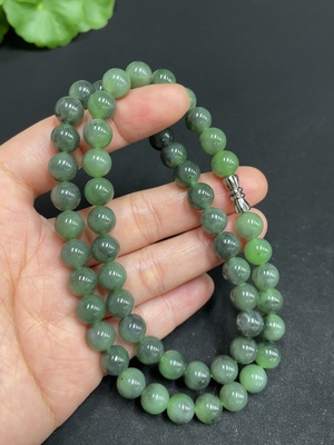 H35109845 Hetian Jade Bead Necklace, approx. 8mm, non-gold inlaid, total weight approx. 49.2g