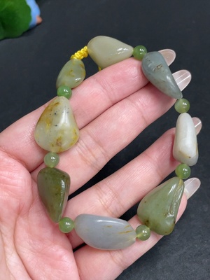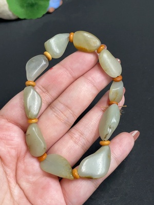 H28243897 Hetian Jade Bracelet, Undetermined Skin Color Origin, Non-Hetian Jade Beads, Total Weight Approximately 47.5g