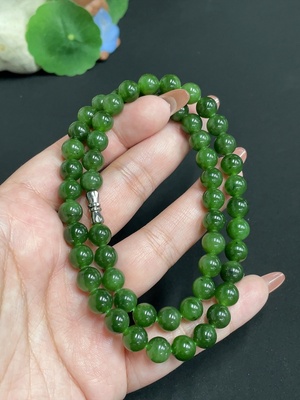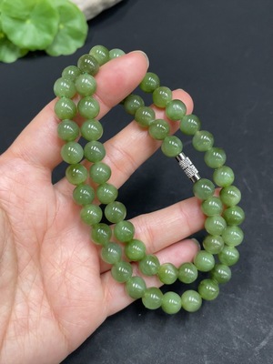 H37437720 Hetian Jade Bead Necklace, approx. 8mm, total weight approx. 87.9g