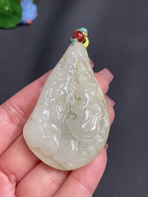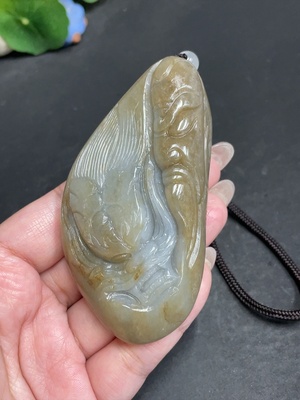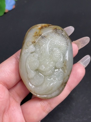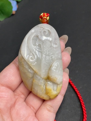 H30464017 Hetian Jade Handheld Carving Antique-style Piece with Additional Mineral Components Undetermined Skin Color Origin Total Weight Approx. [Including Rope] 115.4g
