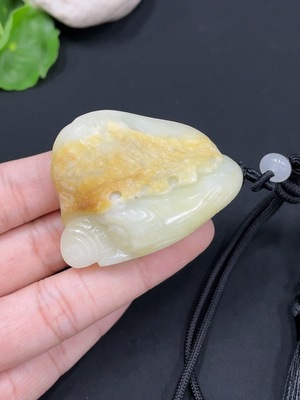 H21413728 Hetian Jade Seed Material Handheld Piece 'Abundance Every Year' Undetermined Skin Color Cause Total Weight Approximately (Including Rope) 148.5g