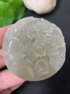 H25867500 Hetian Jade Handheld Ornament - Landscape - Total Weight Approx. 187.4g