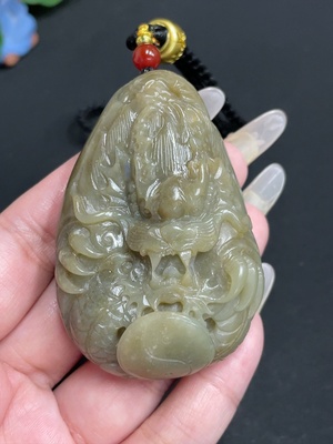H24733393 Hetian Jade Seed Material Pendant - Dragon Roaming the World - Undetermined Skin Color Origin - Total Weight (including rope) Approx. 54.8g