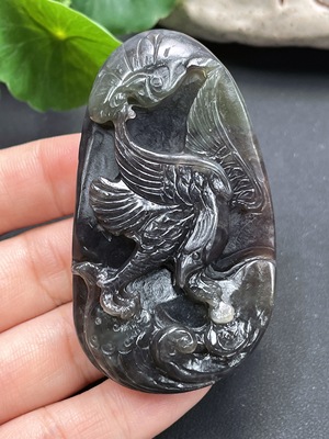 H19129182 Hetian Jade Pendant - Great Ambition - Undetermined Skin Color Origin - Total Weight (Including Cord): Approx. 17.9g