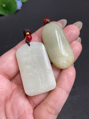 H29422791 Hetian Jade Pendant - Bamboo Joint Landscape - Total Weight (including rope): approx. 38.7g - Undetermined Skin Color Cause
