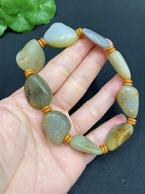 H30570418 Hetian Jade Bracelet, Undetermined Skin Color Origin, Non-Hetian Jade Beads, Total Weight Approximately 51.6g