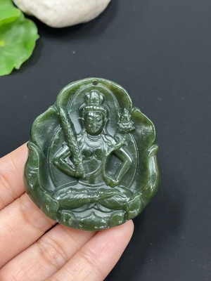 H26977405 Hetian Jade Pendant Akasagarbha Bodhisattva Total Weight: Approx. 31g