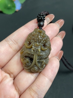 H25915047 Hetian Jade Pendant, Dragon, Zhong Kui