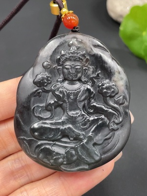 H18020419 Hetian Jade Pendant Tara Total Weight Approx. (with rope) 59g