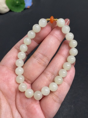H33862980 Hetian Jade Bead Bracelet, approx. 7.7 mm, total weight about 17.9g