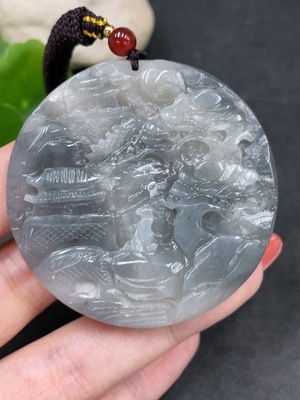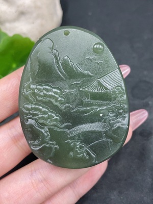 H34960887 Hetian Jade Pendant Landscape Plaque Total Weight (including rope) 47.4g