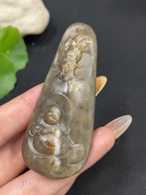 H32812424 Hetian Jade Handheld Carving Antique-style Piece with Other Mineral Components Undetermined Skin Color Origin Total Weight Approx. [Including String] 67.1g
