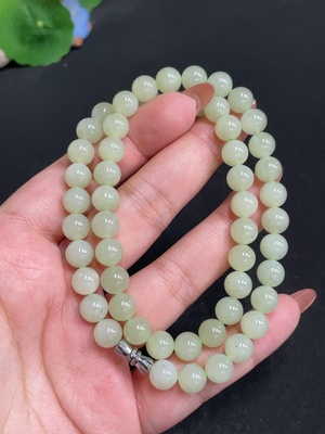 H34955564 Hetian Jade Bead Necklace, Approx. 7.7mm, Total Weight Approx. 45.1g, Non-Gold
