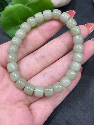 H34073597 Hetian Jade Bead Bracelet, approx. 7.8mm, total weight approx. 18.4g