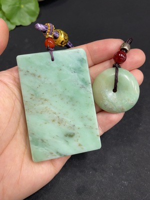 H35130714 Hetian Jade Pendant - Plain Pendant + Peace Knot with Other Mineral Components, Beads Not Hetian Jade, Total Weight Approx. (Including Cord) 74.4g