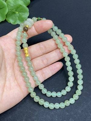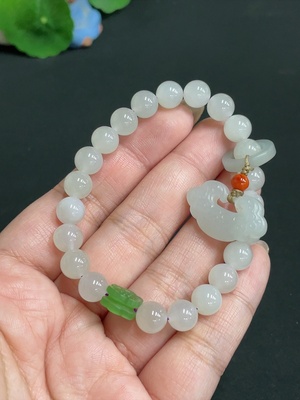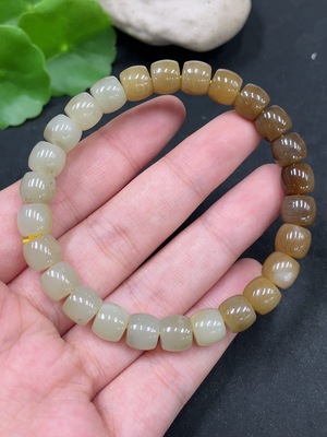 H23687757 Hetian Jade Bracelet, Undetermined Skin Color Origin, Contains Other Mineral Components, Beads Not Hetian Jade, Total Weight Approximately 45.8g