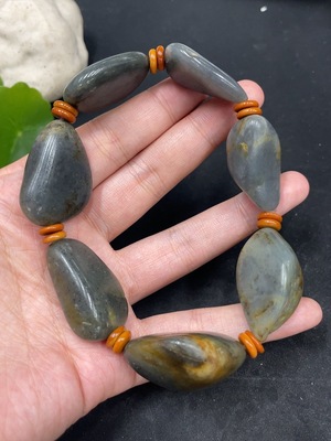 H30537683 Hetian Jade Bracelet with Non-Hetian Jade Beads, Undetermined Skin Color Origin, Total Weight Approximately 93g