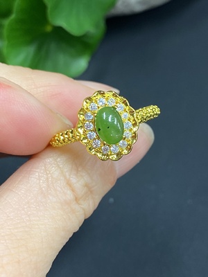 H13442335 Hetian Jade Egg-shaped Bezel Open Ring Non-gold Setting Total Weight: Approx. 2.7g