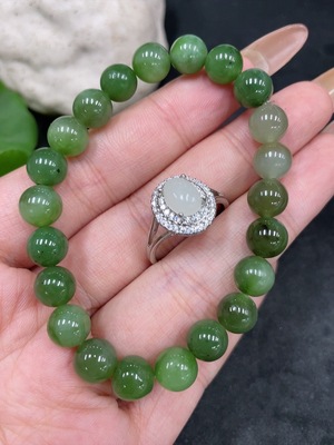 H32777796 Hetian Jade Bracelet + Adjustable Inlaid Ring Non-Gold Total Weight Approx. 18.6g