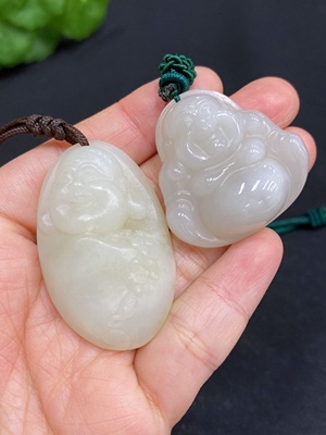 H30439947 Hetian Jade Pendant - Buddha - Total Weight (including rope): 40.3g