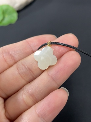 H37401958 Hetian Jade Pendant Four-Leaf Clover with 18K Gold Clasp Total Weight Approx. 1.9g (including cord)