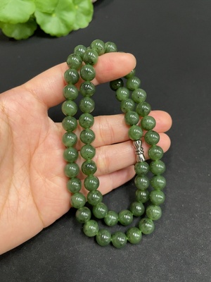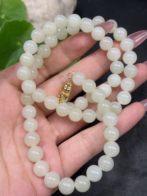 H33896397 Hetian Jade Bead Necklace, Approx. 8.2mm, Non-Gold Inlaid, Total Weight Approx. 48.9g