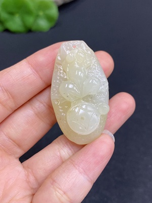 H25915008 Hetian Jade Handheld Ornament Lotus