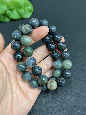 H33903802 Hetian Jade Bracelet with Other Mineral Components, Maximum Bead Size Approximately 11.7mm, Total Weight Approximately 83.3g