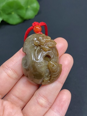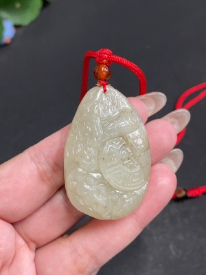 H24759120 Hetian Jade Seed Material Pendant - Abundance Year After Year + Kylin, Undetermined Skin Color Cause, Total Weight Approx. (Including Rope) 66.8g