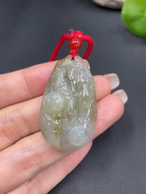 H34956546 Hetian Jade Pendant, Prosperity, Landscape, Contains Other Mineral Components, Total Weight [with Rope] 51.7g