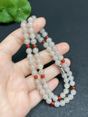 H35168152 Hetian Jade Jasper Bead Necklace, approx. 8mm, total weight about 44.9g