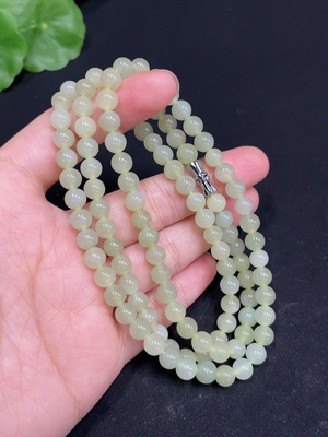 H35102790 Hetian Jade Bead Necklace Approximately 5.9mm Total Weight About 35g