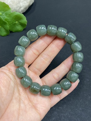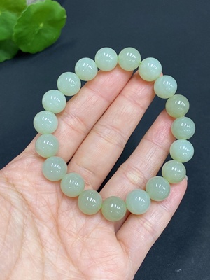 H30552272 Hetian Jade Bracelet Approximately 9.7mm Beads Total Weight About 36.2g