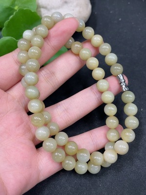 H35112452 Hetian Jade Bead Necklace, Approx. 7.7mm, Non-Gold, Total Weight Approx. 45.1g