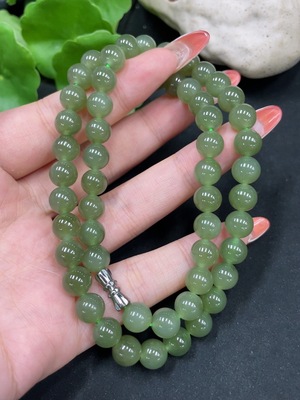 H35169157 Hetian Jade Bead Necklace Non-Gold 7.5mm Approx. Total Weight About 43.8g