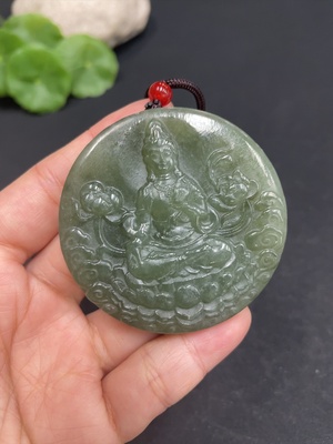 H33858645 Hetian Jade Pendant Green Tara Total Weight Approx. 42.6g