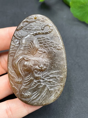 H16715039 Hetian Jade Pendant, Tiger Plaque, Total Weight Approx. 38.4g