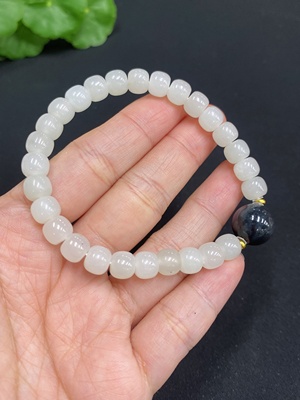 H31634380 Hetian Jade Bracelet, Approx. 7.8 mm Beads, Total Weight Approx. 17.5g