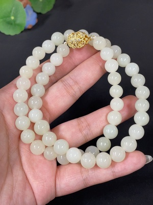 H32770548 Hetian Jade Bead Necklace, Approx. 9mm, Total Weight Approx. 63.4g