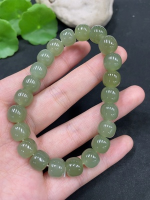 H35100634 Hetian Jade Bracelet Approx. 9.2mm Beads Total Weight About 26g