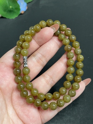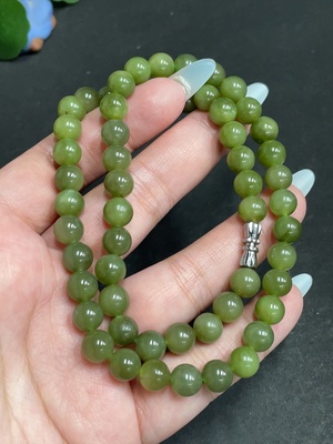 H30546271 Hetian Jade Bead Necklace, Approx. 7.3 mm, Total Weight Approx. 42.5g