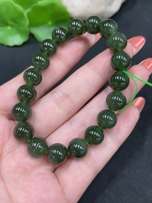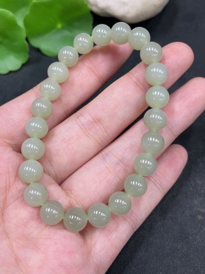 H33846063 Hetian Jade Bracelet, approx. 9.7mm beads, total weight approx. 28.2g
