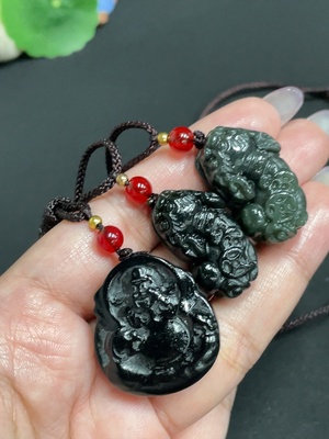 H33901748 Hetian Jade Pendant God of Wealth Pixiu Total weight (including rope): approx. 42.4g Color origin undetermined Contains other mineral components
