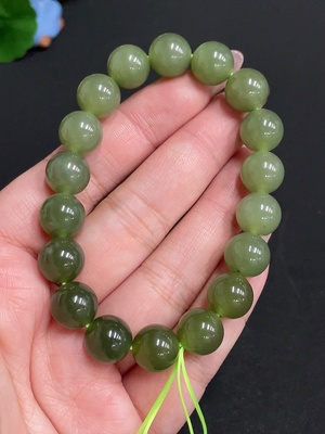H32782002 Hetian Jade Bracelet, approx. 9.9mm beads, total weight about 60.5g