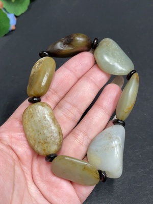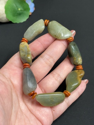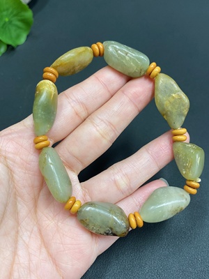 H20269496 Hetian Jade Bracelet, Undetermined Skin Color Origin, Spacers Not Hetian Jade, Contains Other Mineral Components, Total Weight Approx. 38.3g