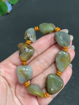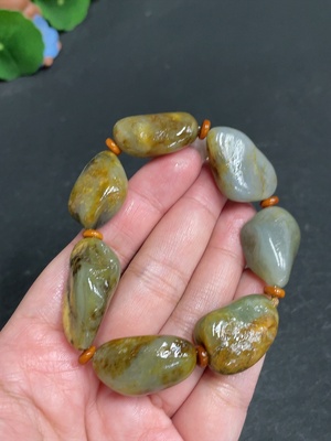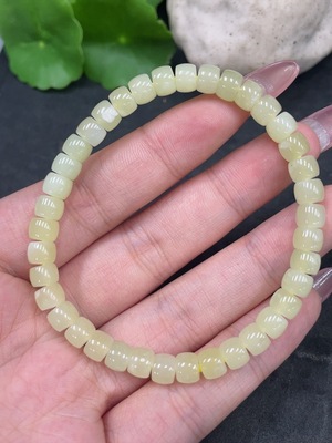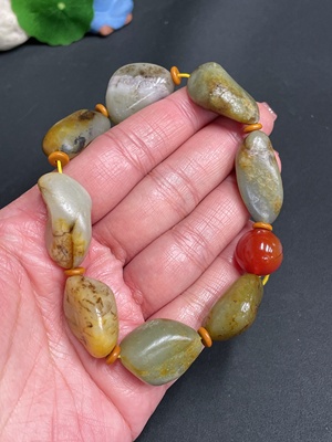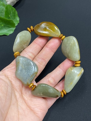 H30486735 Hetian Jade Bracelet (contains other mineral components, skin color origin undetermined, accessory beads not Hetian jade, total weight approximately 55.3g)