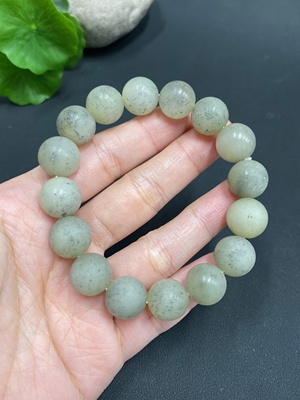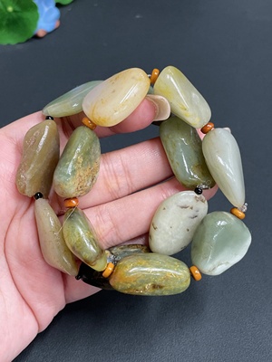 H30486733 Hetian Jade Bracelet with Other Mineral Components, Undetermined Skin Color Origin, Non-Hetian Jade Beads, Total Weight Approximately 46.3g