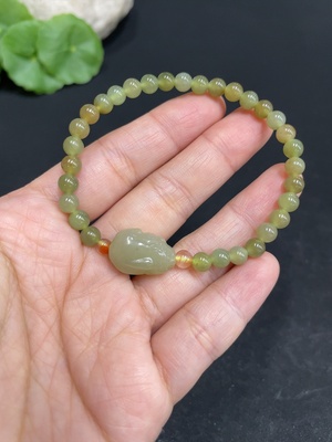 H35110210 Hetian Jade Bracelet, approx. 4.8mm, total weight approx. 9g, non-Hetian Jade beads